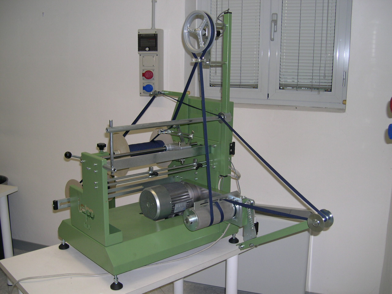 The winding machine CP 200 has been designed to wind up round plaits or flat ribbons directly on flanged reels, flat cards or to make up hanks. It is equipped with programmable counter-meter so that the machine stops automatically once the set length has been reached. The product winding speed can be adjusted by means of a potentiometer. Moreover the pitch of the translator can be easily changed from 0 (zero) to 15 mm and it ensures a perfect distribution of turns on the coil while making the final product homogeneous and compact. Very easy to use, it does not need either maintenance or special tools to modify the pitch or to change the bobbin size. It is very noiseless and compact and it can be installed anywhere, thus saving space for service machines.
